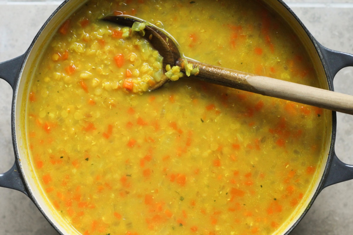 Lentils, chickpeas, cilantro, noodles, tomato sauce.